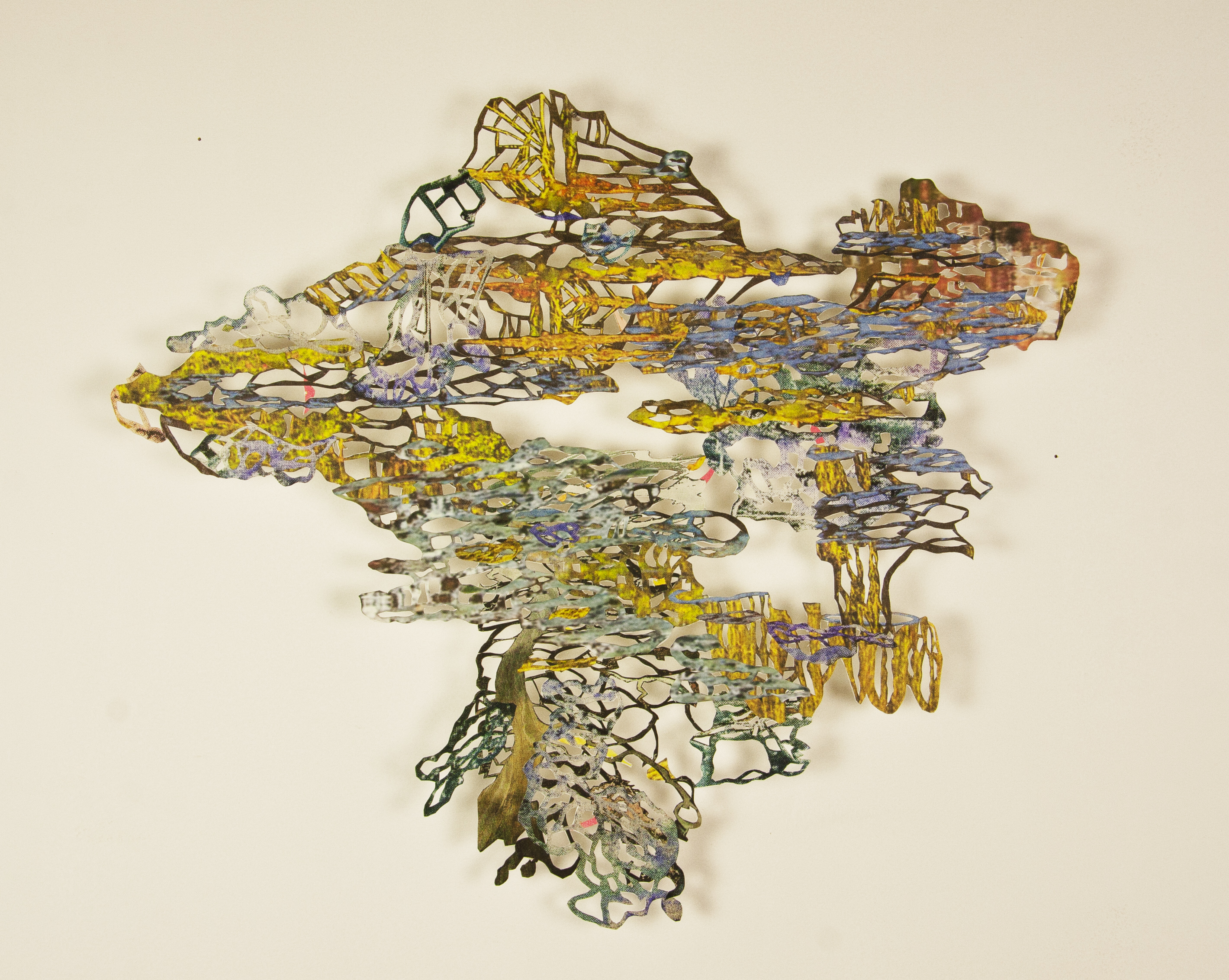 Charlotte Schrameijer is als schilder begonnen. Vanuit een behoefte aan ruimtelijkheid, zowel in als vanuit het platte vlak, heeft zij het ingekaderde vlak van het schilderij verlaten en maakt nu collages die zij papercuts noemt.